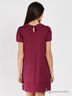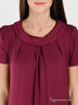 Детали: отложной воротник, застежка на пуговицу на спине, короткий прямой рукав, полочка декорирована встречной складкой