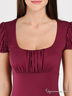 Детали: округлый вырез горловины, отрезной лиф декорирован складками, короткий рукав-фонарик на резинке
