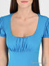 Детали: округлый вырез горловины, отрезной лиф декорирован складками, короткий рукав-фонарик на резинке
