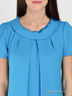Детали: отложной воротник, застежка на пуговицу на спине, короткий прямой рукав, полочка декорирована встречной складкой