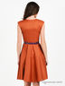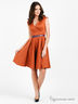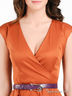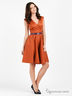 Стильное приталенное платье из шелкового атласа. V-образный вырез горловины с запахом, застежка на скрытую молнию сбоку, расклешенная юбка. В комплекте великолепный ремешок контрастного цвета с металлической пряжкой. Отличный вариант для светских раутов.