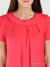Детали: округлый вырез горловины, короткий прямой рукав-реглан слегка присборен в складки, два кармана с декоративными складками