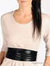Платье из плотного трикотажа. Прямой крой. Круглый вырез горловины. Рукав 3/4. На линии талии шлевки. В дополнение к платью идет пояс.
