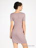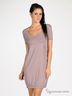 Платье прямого свободного кроя из тонкого трикотажа. Круглый вырез горловины. Короткие рукава. Складки под грудью. Книзу присборено.