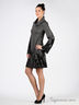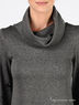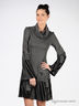 Очаровательное платье из приятного на ощупь теплого трикотажа стильного серого цвета. Широкий воротник хомут. Длинные расклешенные рукава. Декорированы забавным принтом черного цвета.