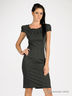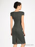 Платье приталенного кроя из плотного трикотажа. Круглый вырез присборен. Короткий рукав с отворотом. Юбка с разрезом. Застегивается сзади на молнию.