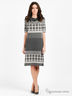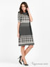Оригинальное платье прямого силуэта из эластичной трикотажной ткани с вырезом-качели и коротким рукавом. Декорировано стильным рисунком. Отличный вариант на каждый день.