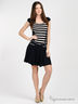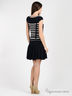 Эффектное платье из тонкого, мягкого трикотажа. Широкий округлый вырез горловины. Короткие рукава-фонарики. Отрезная расклешенная юбка декорирована фигурной вставкой с ложными карманами и лямками, регулируемыми с помощью пряжек. Отличный вариант для летних мероприятий!