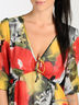 Платье из нежной струящейся ткани, двухслойное. V-образный вырез завязывается на 2 тонких шнурка. Под грудью проходит резинка. Рукава 3/4 присборены на манжетах.