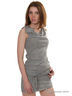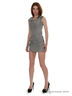 Женское замшевое платье с заниженной талией. Изделие драпированно по линии декольте. Застежка на молнию в спинке. Платье дополнено стильным поясом.