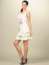 Детали: эффект двойки; круглый вырез; оригинальный крой с декоративными прорезями; полочка декорирована аппликациями