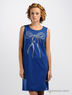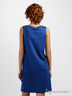 Комфортное и стильное трикотажное платье прямого покроя. Круглая горловина. Без рукавов. Два больших прорезных кармана. Полочка декорирована крупным стразами в виде элегантного банта.