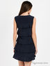 Потрясающее коктейльное платье из натурального шелка с хлопковой подкладкой. Округлый ворот горловины, широкие лямки с декоративными молниями. Скрытая застежка на молнию в левом боковом шве. Полочка украшена бантом, изделие декорировано воланами. Отличный вариант для торжественных случаев.