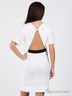 Детали: округлый вырез горловины, короткий рукав, открытая спинка, внутренний пояс, полочка украшена аппликацией