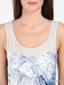 Детали: округлый вырез горловины, лямки, на уровне талии вставлена резинка, оборка, принты