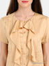 Эффектное платье из шелковистого вискозного материала средней плотности с добавлением натурального шелка. Округлый вырез горловины, короткий рукав, застежка на пуговицы на полочке. Два втачных кармана. Заниженная отрезная линия талии. Полочка украшена строчкой и воланами.