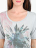 Детали: округлый вырез горловины, короткий рукав, открытая спинка, внутренний пояс, полочка украшена аппликацией