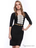 Замечательное платье с рукавами 3/4 и округлым вырезом горловины. Изделие приталенного кроя подчеркивает достоинства фигуры. Отличный вариант на каждый день. Спереди модель дополнена вставкой из кружева контрастной расцветки.