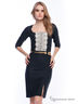 Замечательное платье с рукавами 3/4 и округлым вырезом горловины. Изделие приталенного кроя подчеркивает достоинства фигуры. Отличный вариант на каждый день. Спереди модель дополнена вставкой из кружева контрастной расцветки.