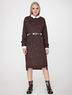 Вязаное теплое платье. Изделие выполнено из смесовой пряжи с содержанием хлопка. Длина миди. Крой свободный. Круглый вырез горловины. Спущенные плечи. Длинные рукава. Платье с подолом разной длины, впереди два небольших разреза. Длина изделия - около 90 см (сзади) /100 (спереди) см.