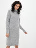 Вязаное платье в рубчик с высоким воротником. Изделие выполнено из теплой, мягкой и эластичной пряжи. Длина миди. Крой приталенный. Воротник-стойка. Длинные рукава, выполнены крупной резинкой.