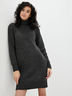 Вязаное платье выполнено из теплой, мягкой и эластичной пряжи. Длина миди. Крой свободный. Спущенные плечи. Воротник-стойка. Длинные широкие рукава. Края изделия выполнены плотной резинкой.