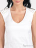 Детали: V-образный вырез горловины, короткий рукав, вытачки, застежка на молнию на спинке, плечики декорированы металлическими элементами