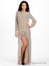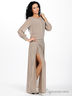 Детали: двухслойное платье в пол; застежка на пуговицы, длинный рукав с манжетой на двух пуговицах, втачной пояс, спереди на боку выполнен глубокий разрез по низу изделия