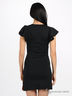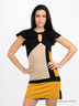 Приталенное трикотажное платье в стиле 60-х. V-образная горловина с завязкой. Короткие рукава крылышки. Геометричная расцветка горчичного и бежевого цветов.