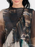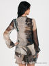 Детали: застежка на пуговицы на полочке, длинный рукав посажен на манжету на пуговице, украшено воланом и принтами