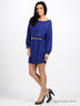 Шикарное легкое платье свободного покроя трендового изумрудного цвета. Широкая круглая горловина. Рукава с манжетами на пуговице. Изюминка платья - тонкий коричневый пояс, подчеркивающий талию только спереди, что создает оригинальный и стильный силуэт.