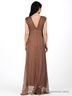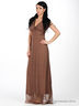 Детали: Платье шифоновое в пол, V-образный вырез спереди и сзади, платье с подкладом, отрезное по линии талии, сборка по всему платью, по вырезу горловины украшено золотистой цепочкой.