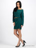 Шикарное легкое платье свободного покроя трендового изумрудного цвета. Широкая круглая горловина. Рукава с манжетами на пуговице. Изюминка платья - тонкий коричневый пояс, подчеркивающий талию только спереди, что создает оригинальный и стильный силуэт.