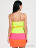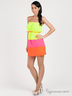 Детали: резинка вшита по верхнему краю изделия, отрезной лиф подчеркнут вставленной резинкой, застежка на молнию на спинке, яркие кислотные цвета, ремешок в комплекте