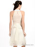 Детали: округлый вырез горловины, застежка на спинке на три пуговицы и на скрытую молнию в боковом шве, пояс-шарфик в комплекте, многослойная юбка с шелковистым подкладом украшена стразами