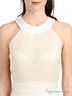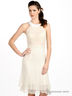 Детали: округлый вырез горловины, застежка на спинке на три пуговицы и на скрытую молнию в боковом шве, пояс-шарфик в комплекте, многослойная юбка с шелковистым подкладом украшена стразами