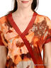 Детали: V-образный вырез горловины, низкая посадка, короткий цельнокроеный рукав, рукав и вырез декорированы сетчатой тканью