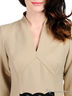 Детали: V-образный вырез горловины, застежка на спинке на пуговицы, скрытая застежка на молнию в левом боковом шве, манжеты на пуговицах