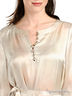 Детали: округлый вырез горловины, застежка на пуговицы, перед и спинка с талиевыми вытачками, боковые швы заканчиваются разрезами, рукав 3/4 втачной