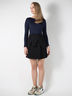 Платье приталенного кроя. Модель с длинным рукавом, круглым вырезом горловины. На спине застежка на молнию. Рекомендуется на рост не более 165 см.