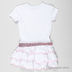 Детали: округлый вырез горловины, короткие рукава, многослойная юбка, изделие декорировано стразами и пайетками, пояс в комплекте