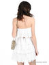 Детали: полочка присборена на резинку, пояс на резинке дополнен широким эластичным ремнем, платье декорировано красивыми воланами
