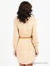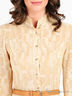 Детали: ворот-стойка, застежка на пуговицы, длинный рукав присборен на манжету с двумя пуговицами, пояс продет в шлевки