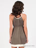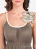 Детали: тонкая бретель декорирована текстильными цветами, пояс на многорядной резинке, низ изделия дополнен трикотажной манжетой
