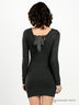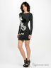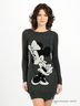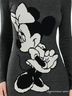Теплое трикотажное платье из коллекции Disney. Приталенный покроя прекрасно подчеркивает фигуру. Широкая круглая горловина декорирована атласными лентами. Длинные рукава с манжетами в рубчик. Полочка украшена стильным забавным рисунком.