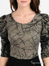 Детали: округлый вырез горловины, укороченный рукав, контрастный отрезной лиф, юбка с драпировкой