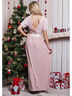 Замечательное платье "в пол" с коротким рукавами и округлым вырезом горловины. Модель приталенного кроя подчеркивает достоинства фигуры. Пояс декорирован пайетками. Отличный вариант на каждый день.