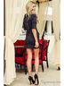 Платье с короткими рукавами и округлым вырезом горловины. Модель приталенного кроя декорирована качественной фурнитурой "под золото". Отличный вариант на каждый день.