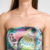 Платье приталенного кроя из шелковистой ткани. Отрезной лиф, на спине стянут многорядной резинкой. На груди вытачки. Юбка спереди декорирована многорядными горизонтальными складками. Платье без подклада.