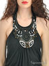 Детали: оригинальное платье с застежкой на шее, на спине большой вырез с вставкой из резинки, украшено воланами, дополнено дизайнерским украшением из бисера, ювелирного стекла, страз